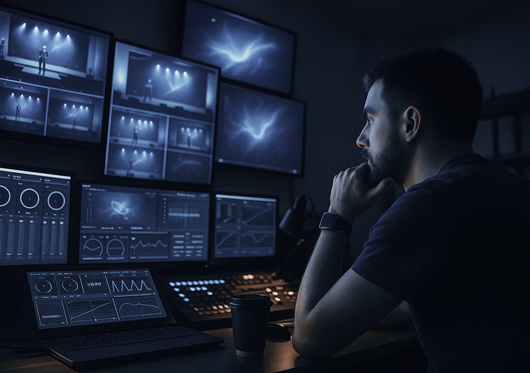 Controlled load-in with safety oversight. System integration, rehearsals, live management, and real-time adjustments.